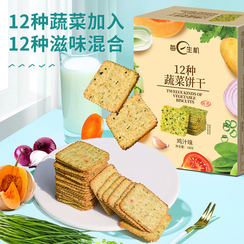 每日生机12种蔬菜苏打饼干鸡汁原味鲜薄脆餐网红小吃休闲零食1